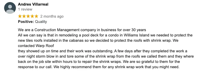 "It was literally raining in my home after a hurricane. The installation was so easy, they were in and out in a couple hours!"